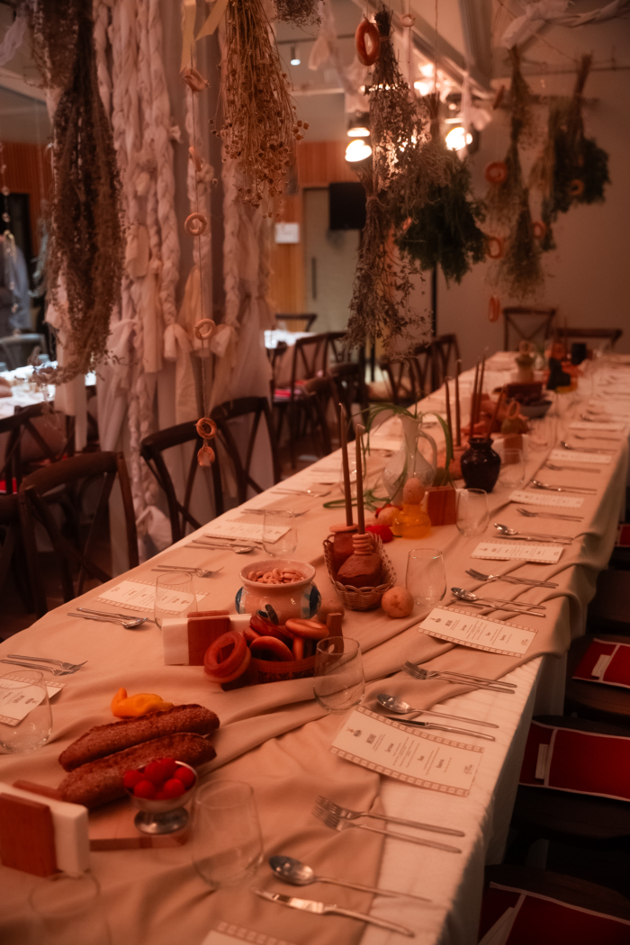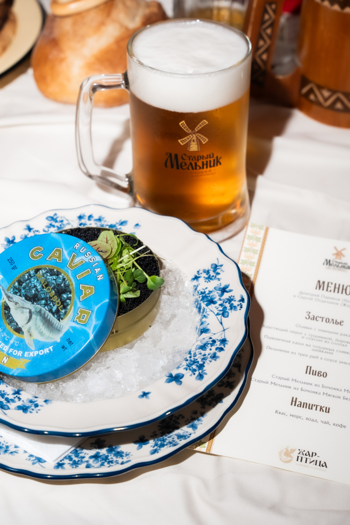 Готовили для гостей шефы Сергей Отдельнов (ресторанная группа Alba Group) и Дмитрий Париков (проект «На даче»). Ужин при свечах был вдохновлен старорусскими рецептами из локальных продуктов: оливье с пивными раками, хрустящий пирог с тушниной, боровиками, сметаной и соусом из солода, пшеничная каша на топленых сливках с раковыми шейками, пельмени из трех рыб в соусе хмельной солод. Специальная версия авторского меню также будет доступна в «Жар‑Птице» в течение всего декабря.